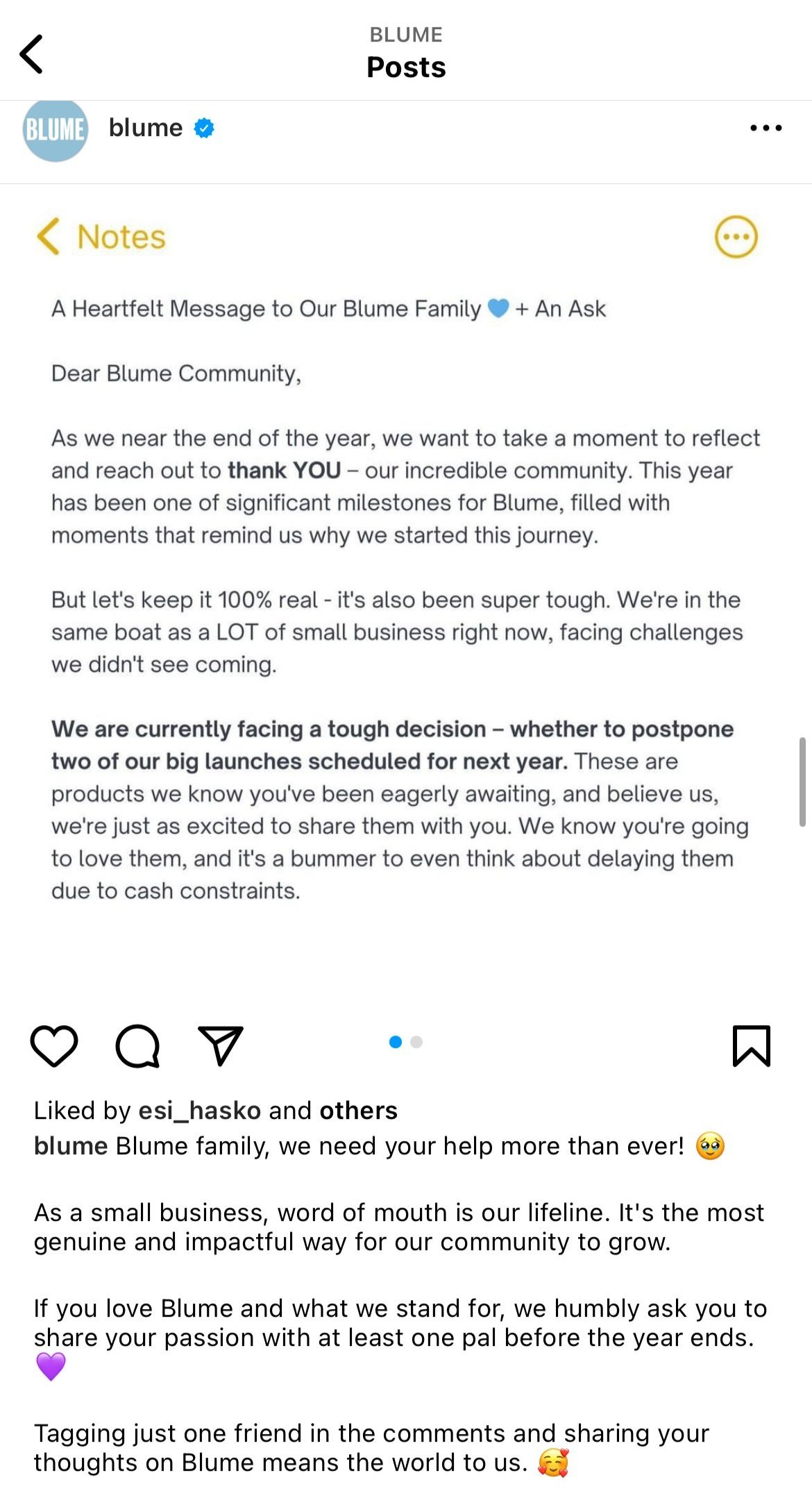 Cookie-cutter marketing is out, real dialogue and relationships are in. True brand marketing connects a business to its audience through their shared values. Blume, a skincare brand, doesn’t just talk about community, they’re in it.