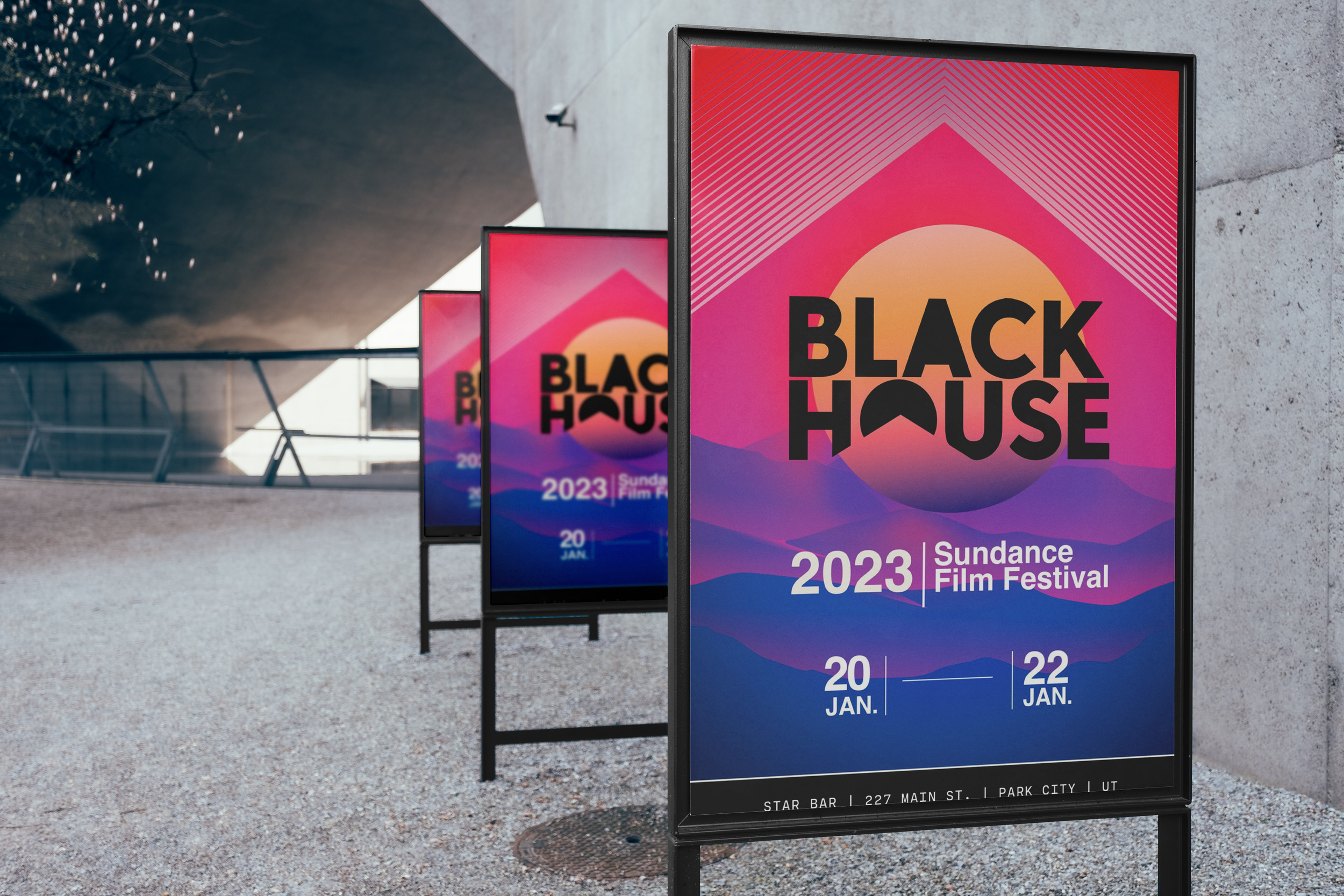 Our journey with The Blackhouse didn't end with the brand refresh. We had the exciting opportunity to extend our creative partnership by crafting a unique event identity suite for their standout appearance at the Sundance Film Festival 2023. This suite not only elevated The Blackhouse's presence at Sundance but also strengthened their brand narrative, offering a seamless visual story that resonated with attendees and online audiences alike.
