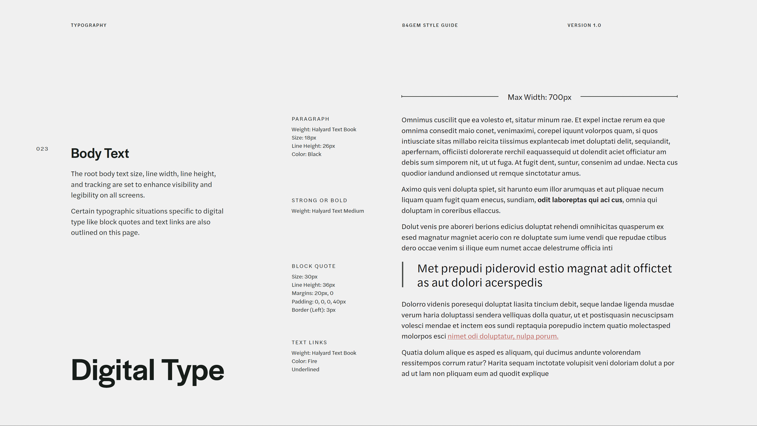 The typography choice was a blend of command and ease. Vultura Regular, with its bold lettering yet thin ligatures, resonates with 84GEM's ethos of subtle command. On the other hand, Halyard Display, chosen for its easy, airy demeanor, aligns seamlessly with the brand's light and elegant essence, ensuring a cohesive, brand-centric digital experience.